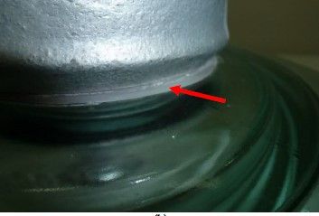 El flocado evita también el contacto directo de la caperuza con el dieléctrico. La figura 4 muestra el dieléctrico de vidrio en contacto directo con la caperuza del aislador con el riesgo de rotura mecánica.